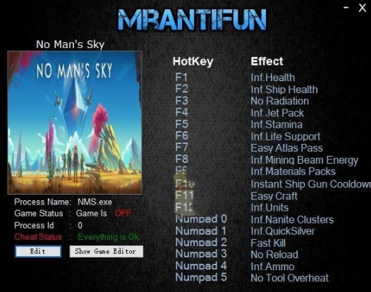 无人深空修改器最新版是一款可以持支持玩家探索宇宙空间的一款射击游戏,在无人深空修改器下,玩家可以更加自由的进行探索,让你创建属于自己的基地,在无人深空修改器使用下对生命、物品、手榴、装弹等等进行修改,另外也可以使用修改器修改功能跟火力的大小,让你更好的进行游戏的操作。