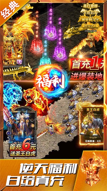(6)杀怪爆装,多人模式pk战、公会战、夜战,挑战boss不但可以获得丰厚的装备奖励,更可获得丰厚的回报。
