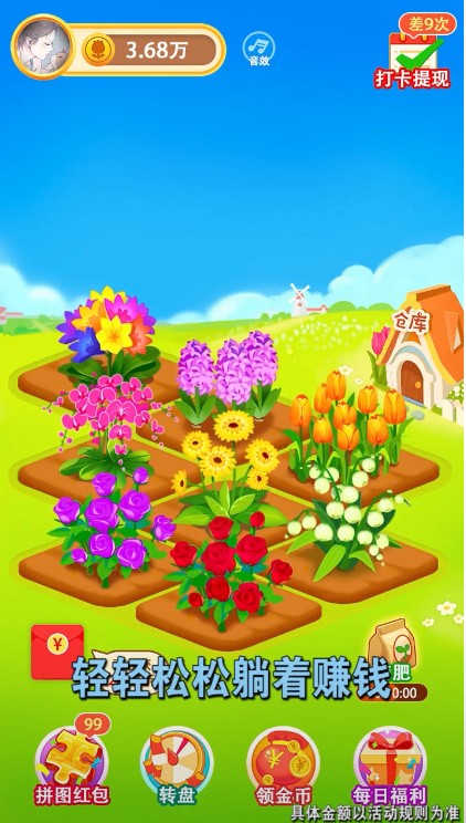4、需要经营好自己的花园,给你的花儿浇水施肥,操作简单易上手,还可以赚红包;
