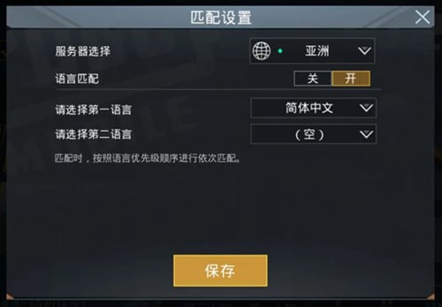 3、在我们选择进行匹配设置时,需要选择服务器,也可以设置语言匹配,第一语言,第二语言,都可以设置成为简体中文,点击保存即可。