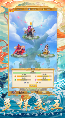 西天灵宠有熟悉的西游记人物以及相关场景,玩家在西天灵宠游戏内可以选择孙悟空、沙僧、猪八戒、唐僧等人物去闯南天门、傲来国、蟠桃园等试炼副本,每个回合都可以派遣三个角色进行对战,,每个回合玩家都会遇到不一样的西游角色与你对战,玩家可通过升级提高角色的攻击、防御、生命、攻防,同时可以在商店内用元宝购买想要的物品提升角色的战斗力。